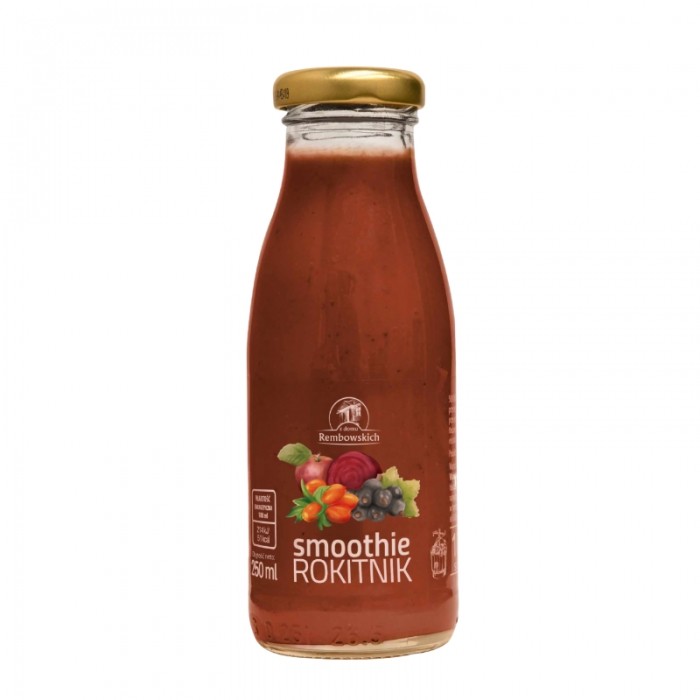 Składniki: przecier z jabłek, tłoczony sok jabłkowy 22,5%, przecier z bananów, tłoczony sok z pomarańczy, tłoczony sok z czarnej porzeczki 7%, tłoczony sok z buraka 5%, tłoczony sok z czarnego bzu, przecier z rokitnika 2%.