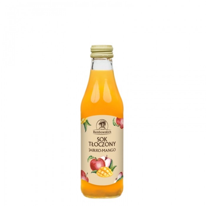 Tłocznia Soków Rembowscy dostarcza Państwu nieklarowany naturalny sok jabłkowy z dodatkiem przecieru z mango. Jest słodki, aromatyczny i treściwy. Produkt poddany pasteryzacji.
