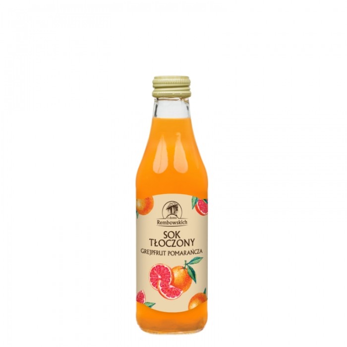 Sok grejpfrut - pomarańcza powstał z połącznia soków tłoczonych pomarańczowego i grejpfrutowego. Ma smak słodko gorzkawy. Jest orzeźwiający i aromatyczny. Produkt bez dodatku wody i cukru. Pasteryzowany.